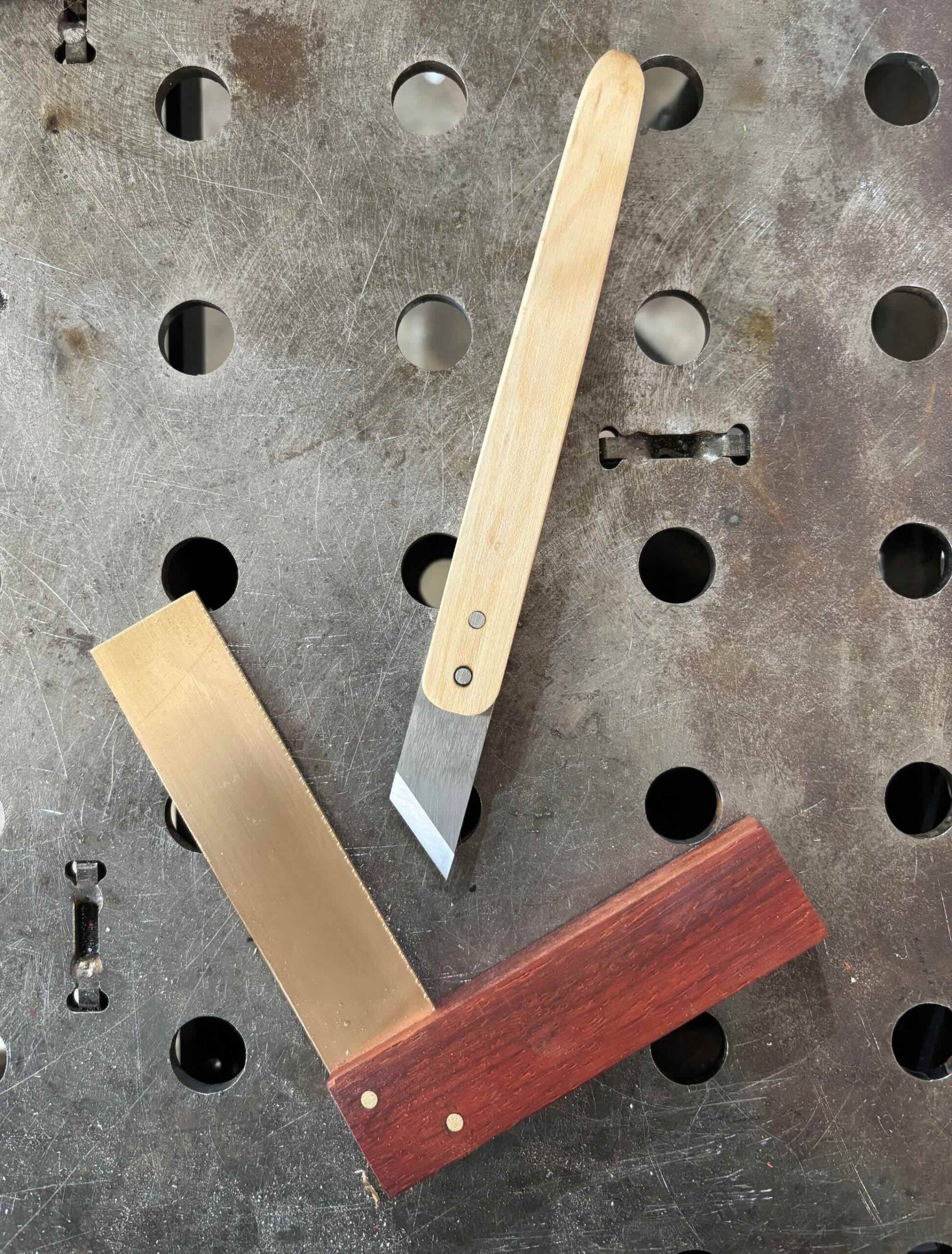 In this weekend class, students will learn a few fundamental metalworking and woodworking techniques to create a series of small marking and layout tools. In the making of a marking knife, small bevel gauge, and a square, we'll learn about different metals and their applications (tool steels, brass, and bronze), learn to to file, grind, heat treat, drill, hammer, sand, and cut our metals, and we'll make wooden handles by incorporating cutting and shaping techniques using the bandsaw, drill press, sanders, and various hand tools. This class will be a practical way for any woodworker to dip their toes into metalworking.