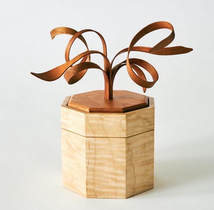 In this class, students will be able to create their very own Spiral Sprout Box! This octagonal, lidded box is topped with a bundle of bentwood spirals. During the class we will cover box design and function, joinery (with geometry—it’s fun, I promise), making a captured panel bottom and lid, wood bending using a hot pipe, creating a tiny wedged tenon, and fine tuning the fit of a split-lid box. This small project is packed with an array of techniques and fun details to make it your own!